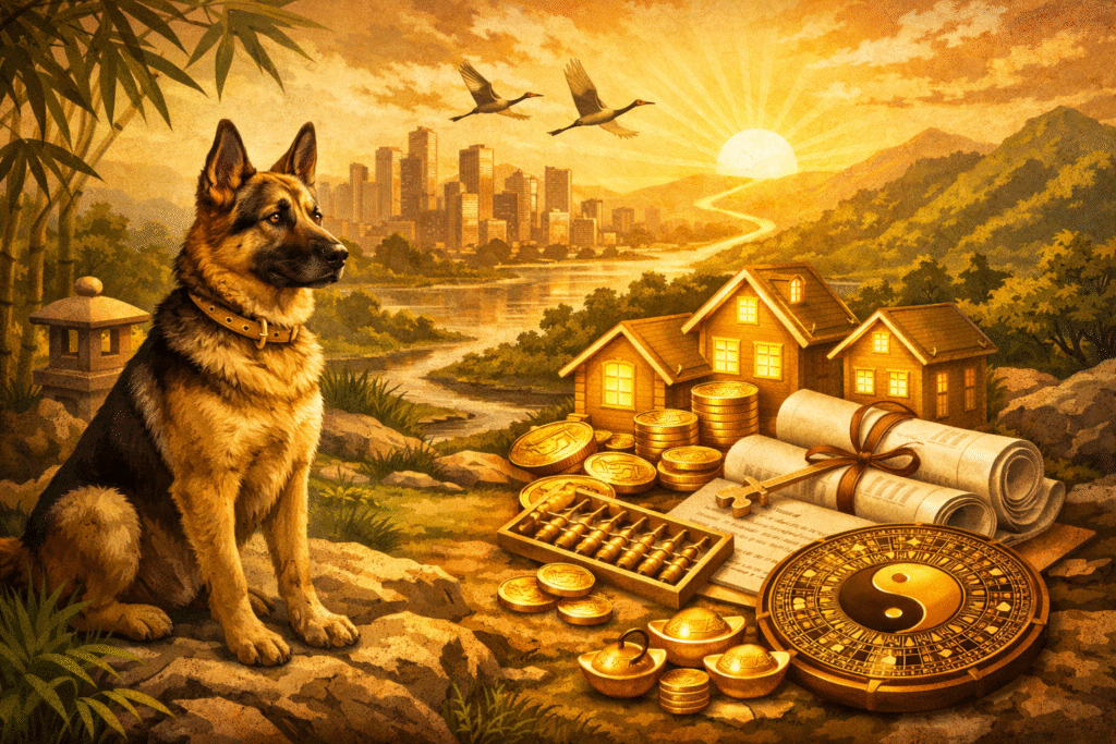 Tuổi Tuất cũng nằm trong bộ Tam Hợp của năm Ngọ nên được đánh giá là có nhiều cơ hội thuận lợi trong lĩnh vực tài sản. Theo ngũ hành, Hỏa của năm Ngọ sinh Thổ của tuổi Tuất, mà Thổ tượng trưng cho đất đai, vì vậy đây có thể là giai đoạn có lợi cho các kế hoạch liên quan đến bất động sản.